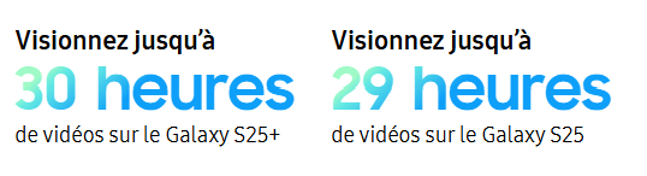 Grâce à notre technologie pionnière mDNIe intégrée à notre point d’accès personnalisé et à notre optimisation logicielle, l’autonomie de la batterie des Galaxy S25 et S25+ est améliorée pour vous permettre de profiter de plusieurs heures de visionnage vidéo.4,7