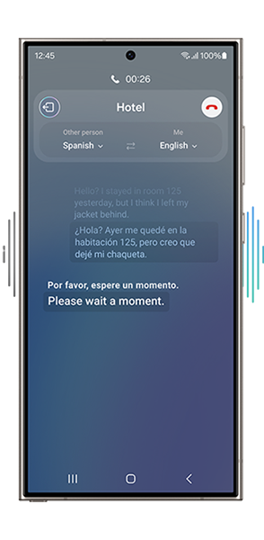 2. Live Translate nécessite une connexion réseau et une connexion au compte Samsung. Live Translate est uniquement disponible sur l'application Samsung Phone préinstallée. Certaines langues peuvent nécessiter le téléchargement d'un pack linguistique. La disponibilité du service peut varier selon la langue. L'exactitude des résultats n'est pas garantie.